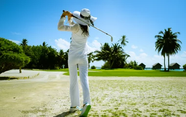 The Bali National Golf is located in Nusa Dua, one of the most famous places to play golf in Bali. Similar to an Indonesian Beverly Hills, this place opens the doors to a luxurious universe where vast tropical gardens decorated with multicolored flowers and a heavenly beach bordered by a coral reef. Prestigious theatres are also there, hosting the most famous troupes of the island.