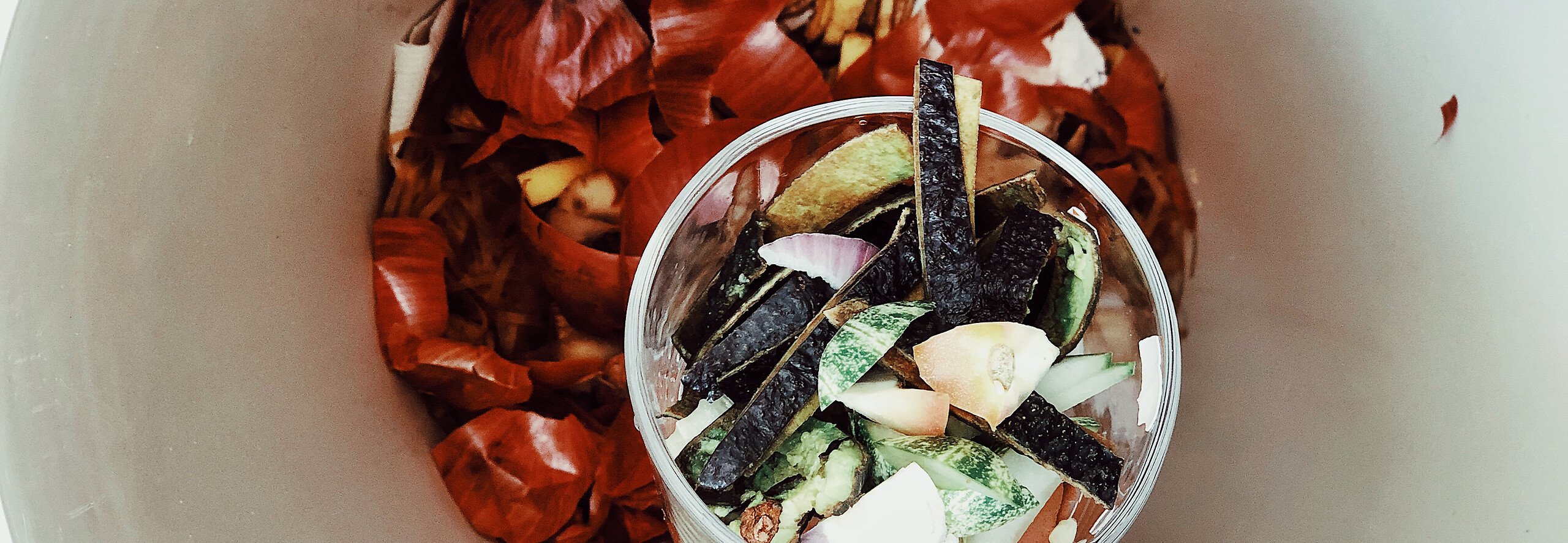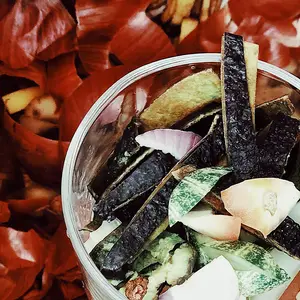 • Make sure all food scraps are chopped into small pieces before throwing into the compost bin.