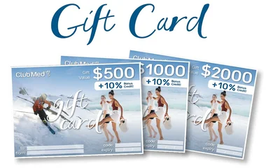 The Club Med gift card is the ideal present for the travel addict of the family, someone who deserves a break or if you feel like treating yourself. From the white sandy beaches of Maldives to the powdery mountains of France, the gift card gives you access to more than 70 destinations worldwide, without any commitment on dates or destinations. Book now and received a bonus 10% credit.